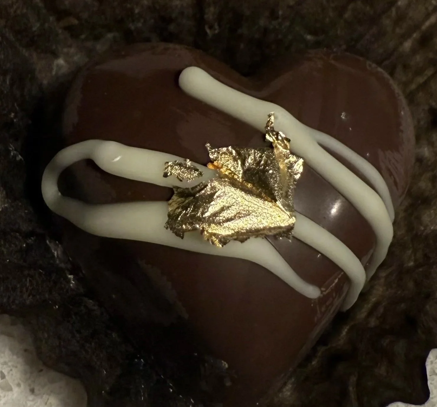 Chocolate cake with a milk chocolate and white chocolate ganache swirl