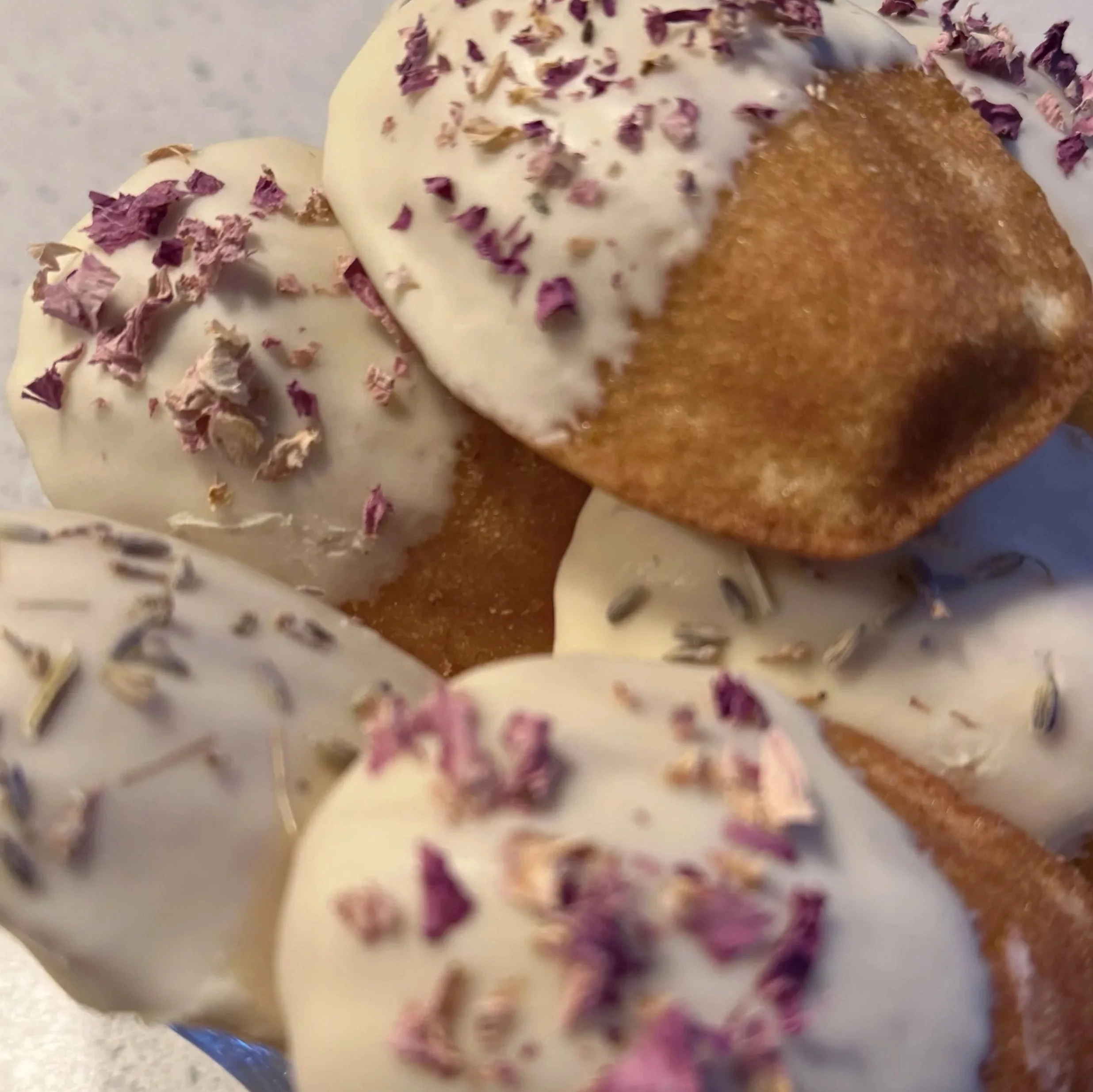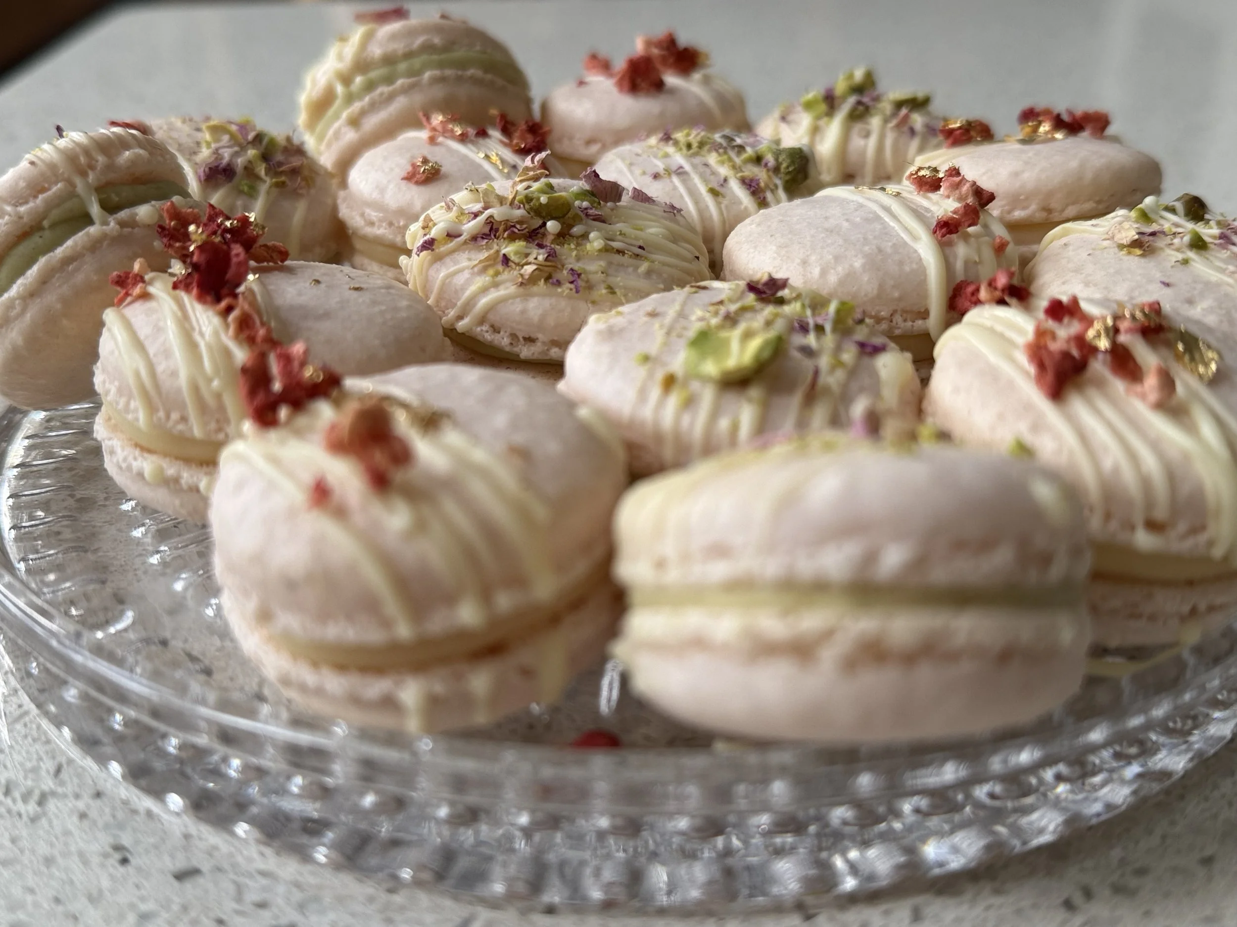 Macarons, madeleines, cookies and handmade chocolates can all be designed for you to match your wedding theme , please enquire when ordering your wedding cake.